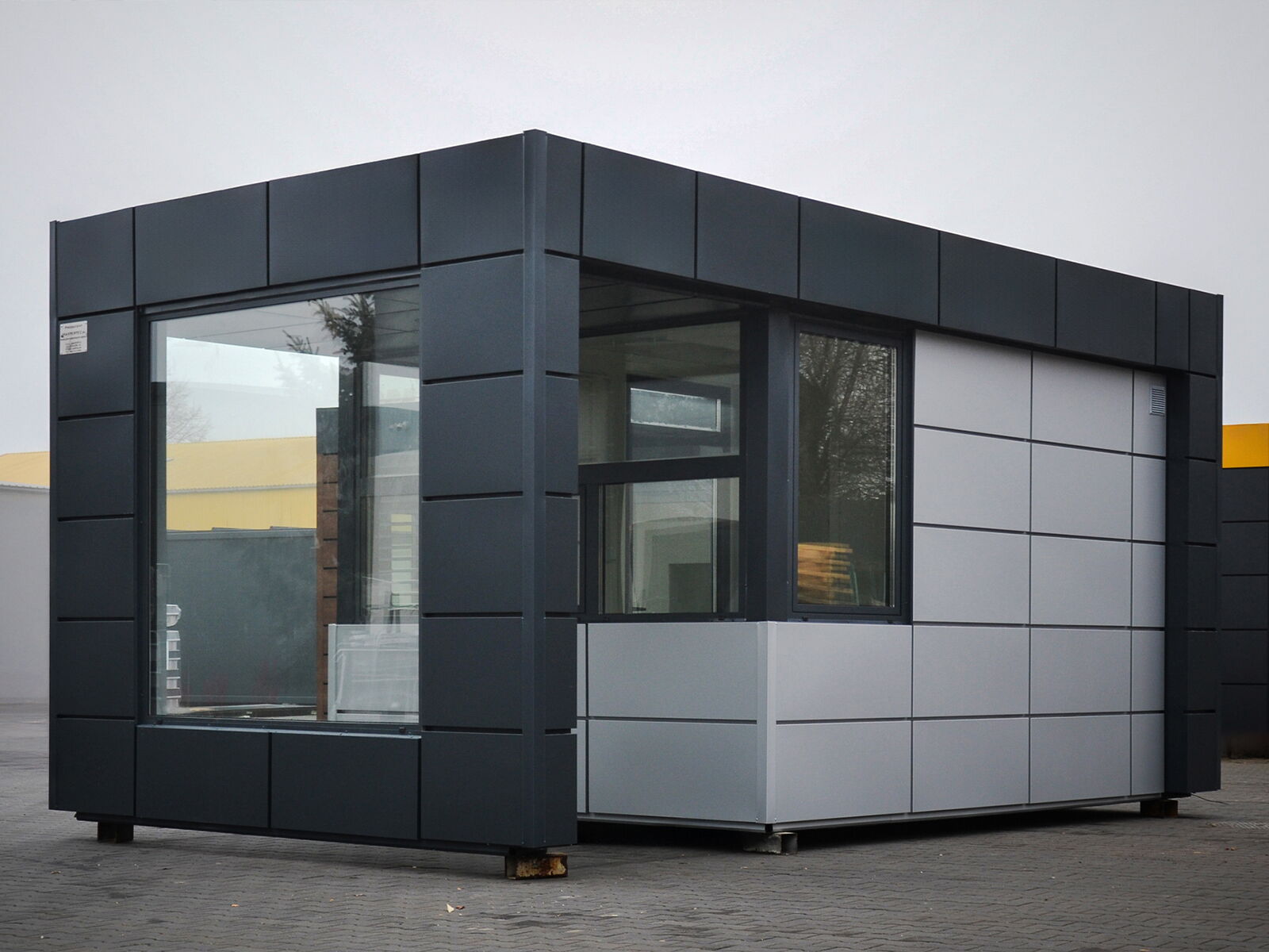 Verkoopcontainer met royale raampartij, 120 mm isolatie en modern design – ideaal voor een uitnodigende productpresentatie op het erf of op open terreinen.